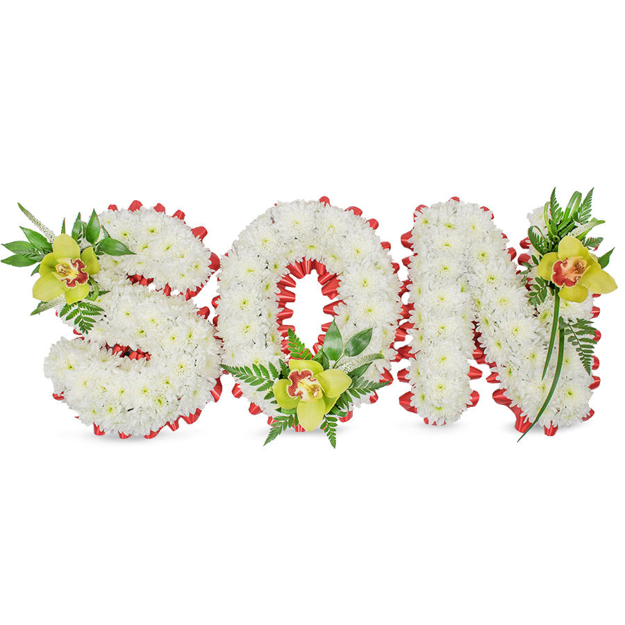 Express your everlasting love with the Heavenly Son Tribute from Flowers Kensal Green. This elegant white floral tribute combines delicate white chrysanthemums, exquisite orchids and graceful white veronica, carefully arranged with lush ruscus, leather leaves and bear grass. Crafted to convey heartfelt sympathy, warm thoughts and sincere remembrance, it is a beautiful way to say they will never be forgotten.
